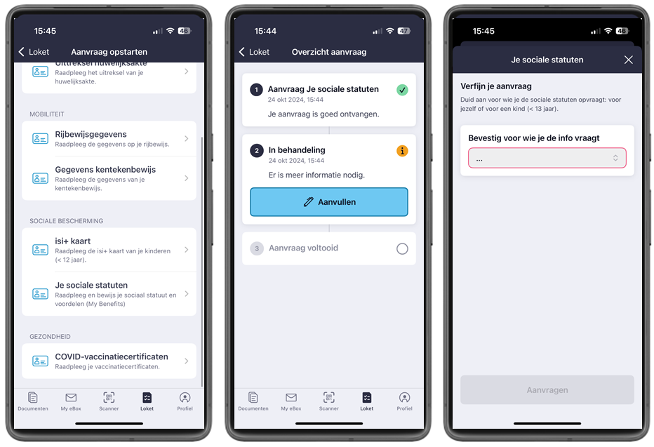 Concreet kan de burger in het luik “Loket” van MyGOV.be, onder de rubriek “sociale bescherming”, de lijst van zijn sociale statuten opvragen, alsook die van zijn kinderen tot 12 jaar.